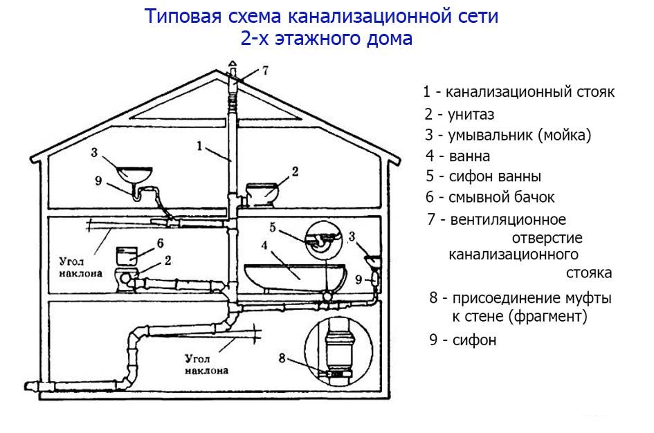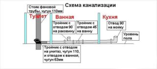 Les travaux d'assainissement dans la maison commencent par la fabrication d'un dessin à partir de l'appareil de plomberie le plus éloigné au dernier étage. Il est conseillé de connecter les tuyaux situés horizontalement de toutes les pièces à une colonne montante, où les égouts seront connectés, en plaçant les pièces à côté. Cette méthode d'assemblage permet une gravité de haute qualité, il est plus facile de maintenir la pente requise qui ne change pas pendant l'utilisation.