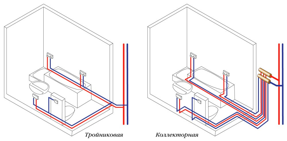 Le câblage du collecteur permet d'assurer une maintenabilité élevée du système dans son ensemble, car il prévoit l'installation d'un robinet pour presque chaque consommateur ou groupe de consommateurs et assure une répartition plus uniforme de l'eau entre les consommateurs. L'inconvénient est la lourdeur du système, les coûts de main-d'œuvre accrus et les difficultés d'installation, ainsi que la consommation accrue de composants et de matériaux.