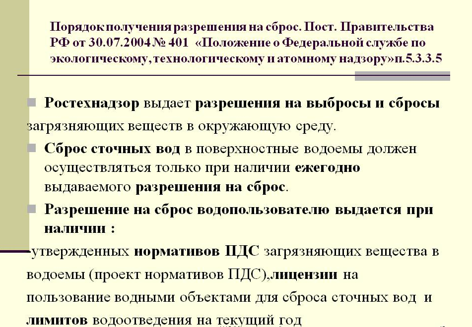 La coordination du point de rejet est nécessaire lors de la création d'un projet et de la construction de fosses septiques, de stations d'épuration avec champs de filtration et autres COV, de collecteurs d'eaux pluviales et d'eaux usées industrielles. C'est l'une des étapes nécessaires pour obtenir l'autorisation de rejeter le liquide clarifié dans un plan d'eau. Le délai d'approbation n'excède pas trois mois à compter de la date de soumission de tous les documents nécessaires.