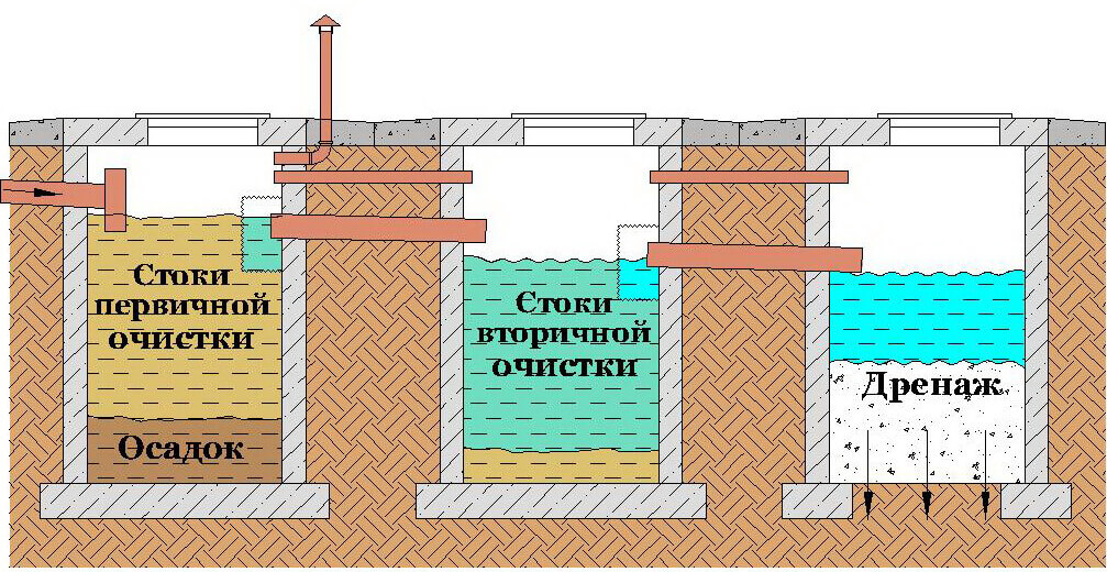 Il est également nécessaire de choisir l'option d'un système d'égout autonome, s'il est prévu. Une solution simple est la construction d'un puisard - un réservoir sans fond avec des murs en briques, des anneaux de béton ou même de vieilles roues de voiture. Les eaux usées s'y accumulent pendant un certain temps, après quoi elles sont pompées avec un équipement d'égout.