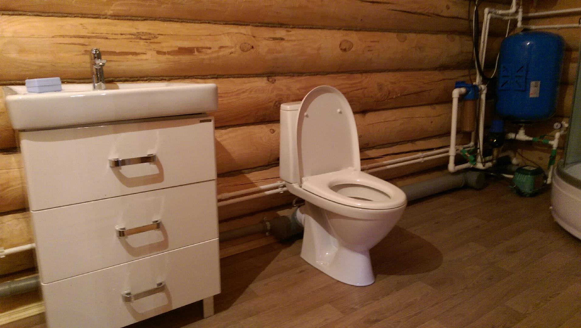 Ils équipent une toilette dans une maison en bois d'un système d'égout selon le même principe que dans un bâtiment fait d'autres matériaux :