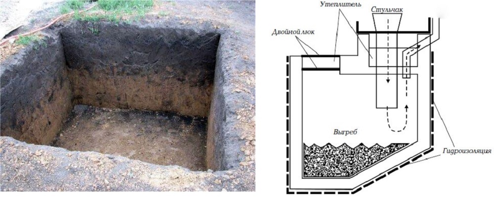 Le processus d'installation de la fosse est standard, les matériaux eux-mêmes différeront directement (en fonction de la composition de la fosse - brique, bois ou béton):