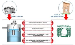 Les cottages privés sont généralement situés sur de petites parcelles où il est impossible d'équiper un potager ou un jardin pour faire pousser des produits pour soi. La fosse septique est généralement combinée, tous les déchets de la maison y pénètrent. Ici, un choix est possible : lorsque le fond est ouvert, il vaut mieux utiliser des agents biologiques pour ne pas polluer la nappe phréatique ; dans une fosse hermétique, vous pouvez utiliser la chimie, mais ensuite l'emmener hors des limites de la ville vers des bassins de sédimentation.