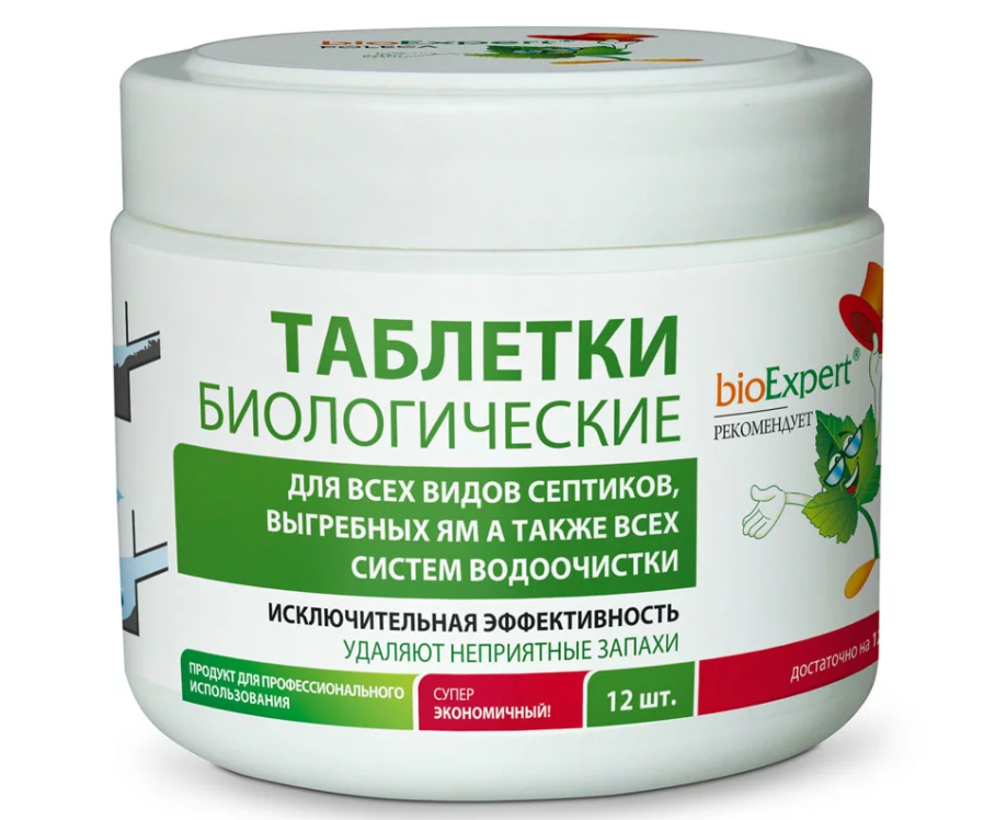 Pilules ne nécessitent pas non plus de dissolution préalable. Leur nombre dépend de la taille de la fosse septique et de la quantité d'eaux usées. Une variété de comprimés - des cassettes avec des micro-organismes, des sacs de dissolution. La base est constituée de micro-organismes anaérobies.
