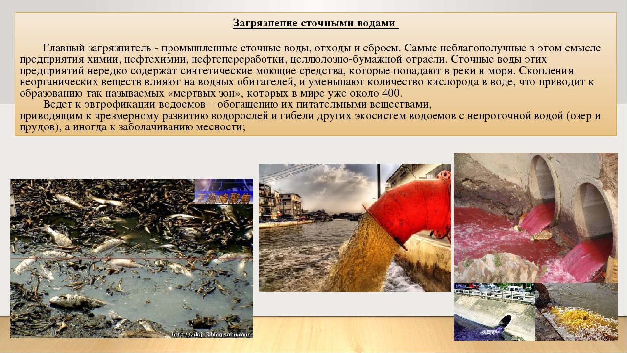 Les effluents industriels sont susceptibles de véhiculer non seulement un danger chimique, mais aussi un danger bactériologique. Cela est possible si le rejet provient d'entreprises de transformation du cuir, d'abattoirs, d'industries médicales. Même les bactéries du charbon, les agents responsables de la morve, peuvent pénétrer dans l'eau. De plus, sans nettoyage, les drains industriels sont une source de produits chimiques agressifs.