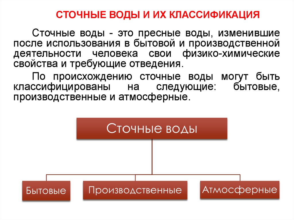 Selon la définition donnée par GOST, les eaux usées sont des liquides qui contiennent des polluants sous forme de déchets ménagers et industriels. Afin de les nettoyer et de les retirer des territoires urbains, d'implantation et des zones d'entreprises, ils équipent les réseaux d'assainissement et les installations de traitement.