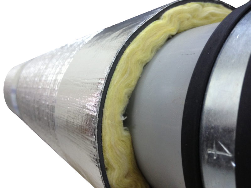 L'insonorisation à coque fermée est agencée selon le principe du "pipe in pipe". L'enveloppe extérieure est un tuyau en polyéthylène. Il est découpé en sections faciles à installer et une découpe verticale est faite pour le mettre sur la colonne montante.