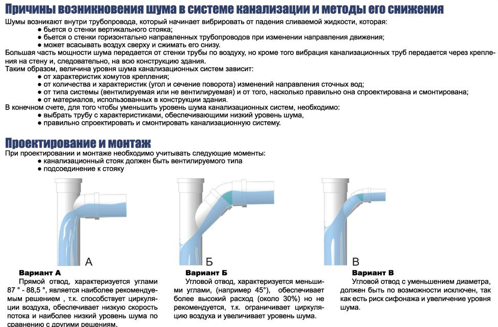 - mauvais choix de matériau - les tuyaux en plastique à paroi mince font plus de bruit que les produits en fonte ou à paroi épaisse;