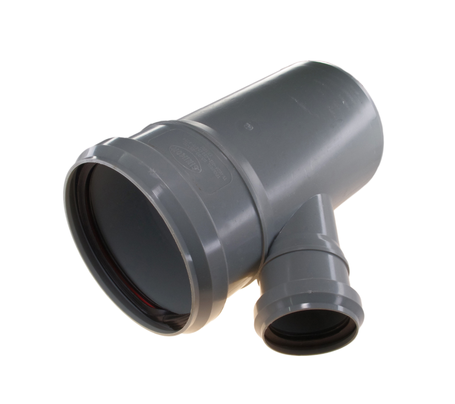 Les grands tees sont rarement utilisés dans les égouts domestiques. Ceux-ci ont généralement un diamètre de 50, 110 et 160 mm. La configuration dépend de la section de tuyau à raccorder, par exemple lors du raccordement d'un tuyau de sortie de 50 mm de diamètre à un système extérieur de 110 mm.