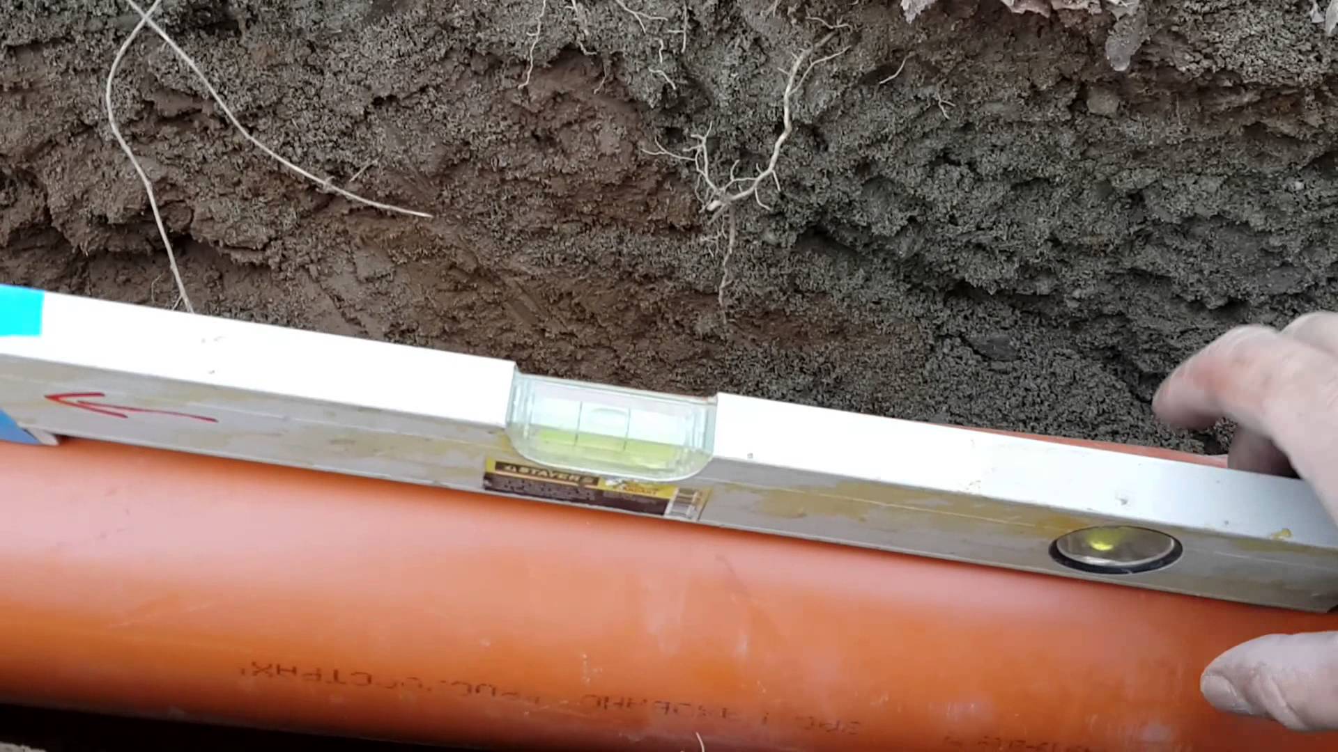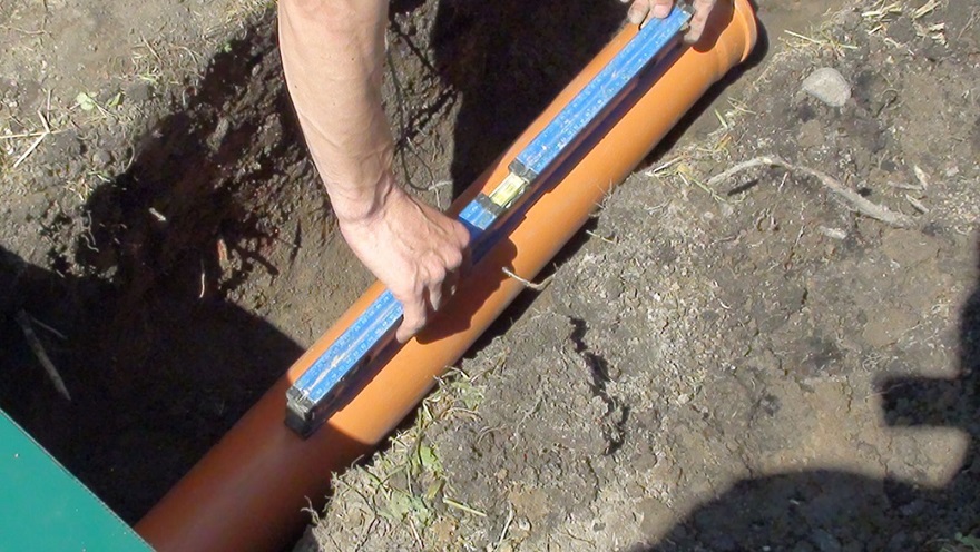 La pose de l'autoroute extérieure ne s'effectue pas à plus de 50 cm de la surface de la terre, car les communications gèlent en hiver et il faudra utiliser des machines hydrodynamiques pour enlever la glace à l'intérieur. Avec le calcul de la pente, la tranchée est rendue plus profonde, plus le tuyau se rapproche de la fosse septique. La pente d'un tuyau d'un diamètre de 110 mm pour l'assainissement externe doit être d'au moins 1,5 à 2 cm par mètre courant.