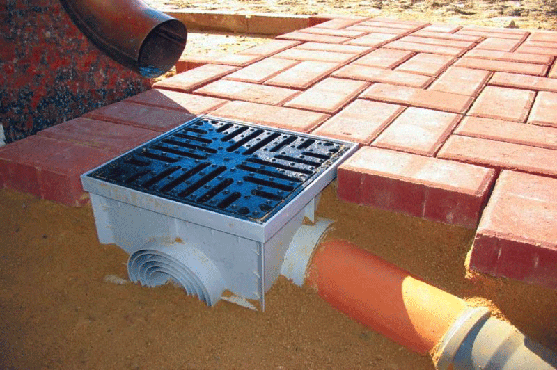 - Enlever le liquide vers le bas. De tels éléments de l'égout pluvial dirigent l'eau dans le sol, directement dans le puits de drainage.