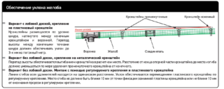 Le travail commence par déterminer la pente des supports et marquer le niveau avec une corde. Les attaches sont montées depuis le coin de la maison. Étapes d'installation une fois tous les crochets vissés :