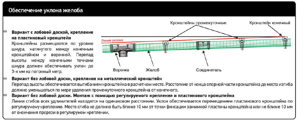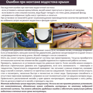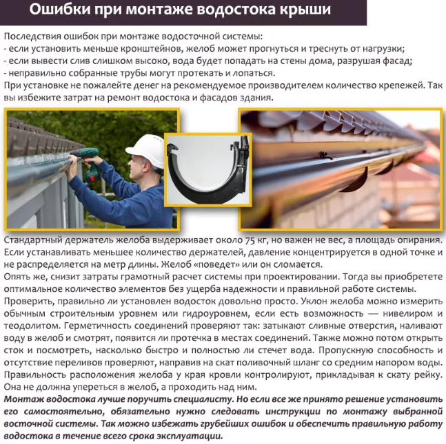 Économiser sur les supports et les crochets peut entraîner l'affaissement du système de drainage et même son effondrement en hiver, car la glace et la neige s'accumulent dans les gouttières.