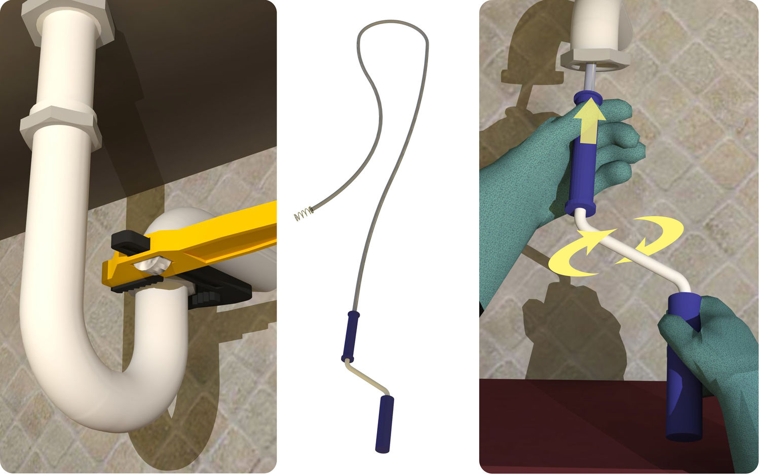 Résout le problème si le blocage s'est produit exactement ici. Le siphon est situé sous la baignoire ou l'évier de la cuisine.Dans le premier cas, il se bouche avec des cheveux, des morceaux de savon écrasés, dans le second - avec de la graisse épaisse ou des débris alimentaires. Démontez-le pour le nettoyer. Nous mettons un seau ou un bassin sur le sol en dessous afin que l'eau ne se renverse pas sur le sol. Déconnectez le puisard du siphon des fixations de l'évier ou de la baignoire. Selon le type, cela peut être fait manuellement ou avec une clé à molette. Le genou démonté est nettoyé mécaniquement avec une brosse ou une brosse, vous pouvez utiliser divers détergents, si nécessaire. Lorsque les travaux sont terminés, nous connectons tous les éléments entre eux et les reconnectons au drain. Nous ouvrons l'eau et surveillons sa passabilité. Il convient également de prêter attention aux joints, auquel cas, posez des joints en caoutchouc afin que l'eau ne s'écoule pas des tuyaux eux-mêmes vers le sol.