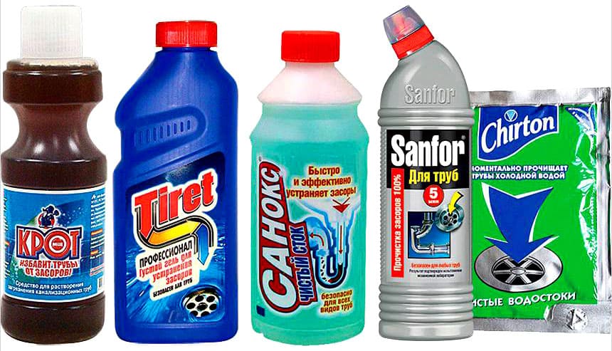 Ce réactif a également été utilisé avec succès par nos mères et nos grands-mères. Le bon marché et la facilité d'utilisation sont ses aspects positifs. Le produit peut être sec ou liquide. Selon les instructions, nous l'envoyons simplement à l'égout et l'oublions pendant un certain temps. La taupe dissout non seulement le blocage principal, mais nettoie également les dépôts à l'intérieur du tuyau. Autrefois, il était utilisé dans les gros tuyaux en fonte. Par conséquent, il fait face à un blocage dans les systèmes en plastique avec un bang.