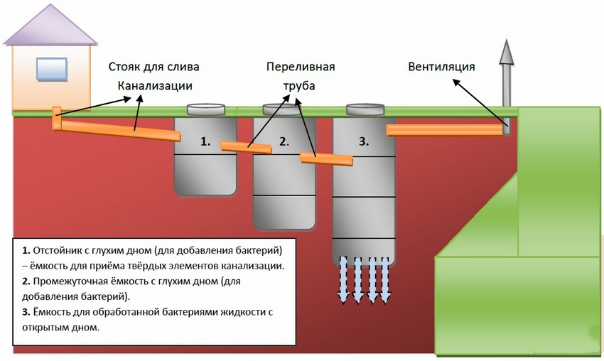 Le plus souvent, une colonne montante de ventilateur est montée sur le réservoir de collecte des déchets. À travers elle, les gaz formés à la suite du traitement des déchets sont évacués.De plus, en cas de volumes de drains importants, le tuyau de ventilation empêche la raréfaction de l'air dans la fosse septique ou la fosse.