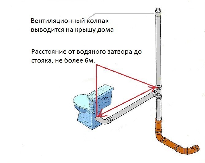 Pour établir un schéma de ventilation pour une colonne montante d'égout dans les maisons privées, les points suivants doivent être pris en compte:
