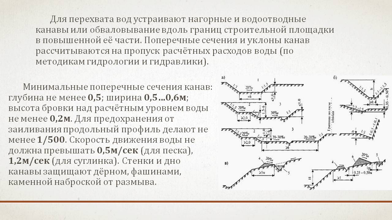 Selon les normes de construction (voir SNiP 2.05.07-85) canaux de drainage :