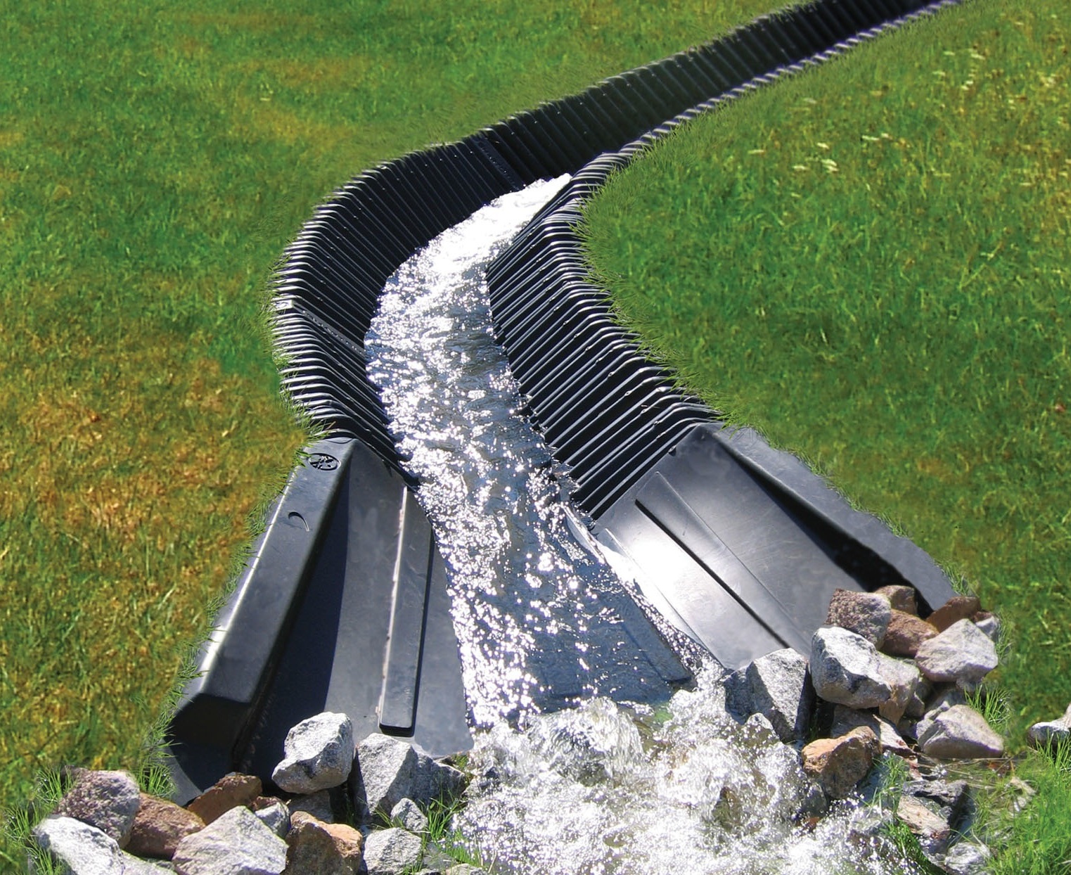 Si le site a un sol faible ou qu'il n'y a pas assez d'espace pour un grand canal, il est conseillé d'utiliser des plateaux de drainage.