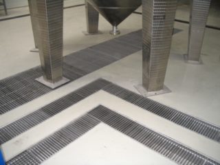 Des plateaux en acier sont fixés aux drains qui les relient au système d'égouts.Ces pièces peuvent également être utilisées indépendamment si elles sont placées en des points d'un bassin versant ponctuel.