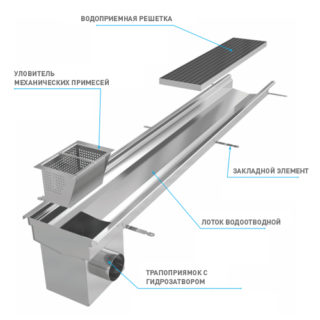 Pour éviter que divers débris ne pénètrent dans le drain, les produits sont équipés de grilles en acier. L'eau les traverse et de grosses fractions de débris restent à la surface. Il existe également des variantes fendues lorsque la surface supérieure avec des trous longitudinaux est déjà fixée au corps.