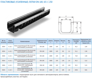 Le plateau Gidrolica Sport, classe de charge A, LV-10.14.5.13.5 et dimensions L / L / H 119/28/14 avec une grille en acier galvanisé coûte 1800 roubles. Les modules ont une résistance à l'usure accrue et un grand choix de sections transversales.