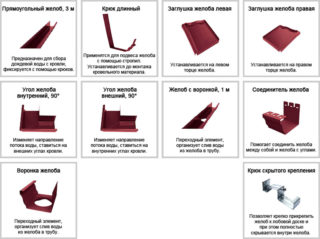 L'installation de la structure de drainage est simple. Il est important de prendre en compte si le matériau de toiture est installé sur le toit lors du choix des pièces du système. Si c'est le cas, utilisez de longs crochets. Ils sont attachés à des lattes, des chevrons. Si le toit est déjà couvert, des supports plus courts seront nécessaires. Ils sont attachés à la planche frontale.