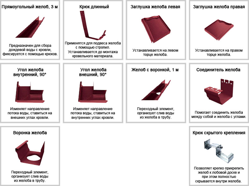 La ligne « Optima » est présentée en sections rondes et rectangulaires. Dimensions 127x91 et 103x78 mm. Il s'agit d'une option économique pour une gouttière en métal avec un revêtement en polyester peu coûteux ou même simplement galvanisé.