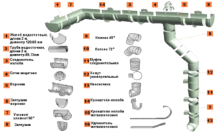 L'étape suivante est une étude détaillée de chaque nœud individuel. Calculer les raccords dont nous avons besoin pour connecter les tuyaux et les gouttières. Nous comptons et notons les coins, les tees, les bouchons.