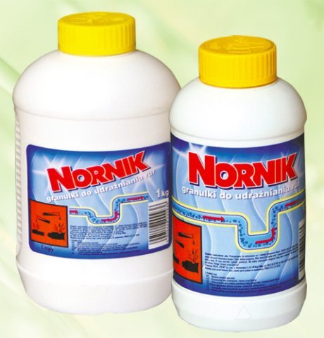 20 g de produit sont versés à l'égout, 2 verres d'eau chaude sont versés et conservés 10 minutes. Ensuite, il est lavé avec une haute pression d'eau.