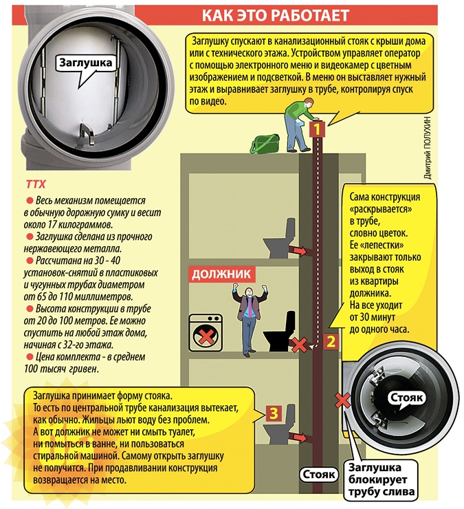 Dans la lutte contre la dette des services publics, les sociétés de gestion utilisent des méthodes dures. Pour amener les gens à payer leurs factures d'eau, ils ferment les égouts à l'aide de bouchons spéciaux. Mais s'il n'y a pas encore d'argent pour un appartement communal, vous pouvez retirer l'appareil vous-même, et c'est tout à fait légal.