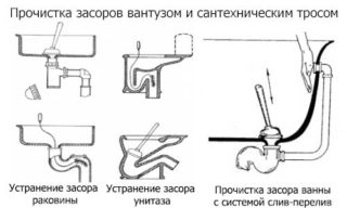 Les bouchons tenaces sont retirés avec un câble de plomberie avec une buse à l'extrémité, après avoir libéré le tuyau du tartre ou de la graisse, il est conseillé d'utiliser un nettoyant liquide, puis de l'eau bouillante.
