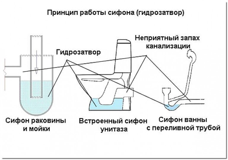 - Le piège à odeurs ne fonctionne pas correctement. Le tuyau incurvé sous la baignoire ou l'évier est spécialement conçu pour empêcher les odeurs de pénétrer dans la pièce en provenance du tuyau commun. En plus de l'évaporation banale du liquide, d'autres problèmes peuvent également survenir. Par exemple, une pression accrue dans la ligne commune. Cela se produit lorsque ce n'est pas la pente des tuyaux qui est utilisée pour déplacer les eaux usées, mais l'équipement de pompage. S'il est mal réglé, l'appareil créera une pression et de l'air pénétrera dans l'appartement. La raison peut être des tuyaux de petit diamètre, un blocage ou du givrage si la pièce n'a pas été chauffée.