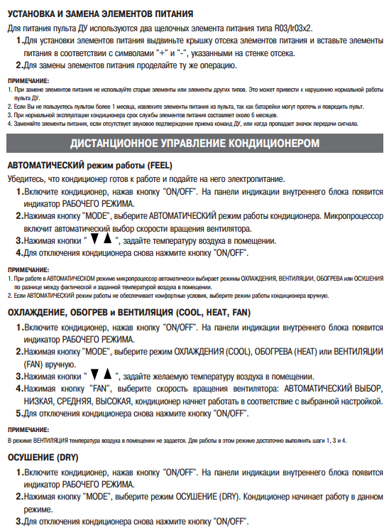 Avant d'allumer et d'utiliser des appareils électriques, vous devez vous familiariser avec les instructions d'utilisation incluses dans le kit. Cela vous évitera d'éventuelles erreurs, pannes et pannes du système. Il est à noter que les instructions pour les climatiseurs incluses dans l'emballage peuvent être émises non pas pour un, mais pour deux ou plusieurs modèles.