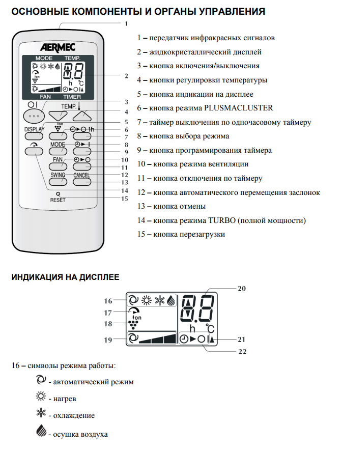 - Instructions pour le panneau de commande Aermec et les climatiseurs