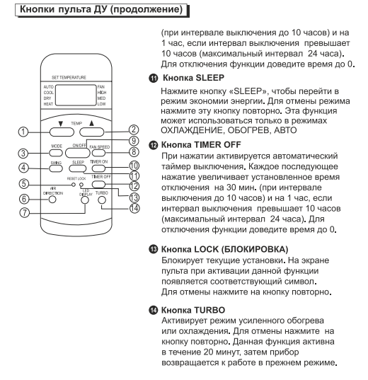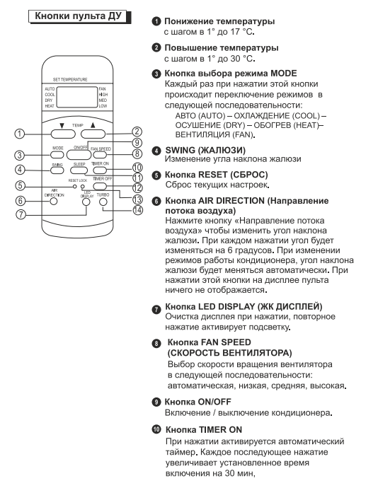 Après avoir étudié les instructions pour les climatiseurs, l'acheteur pourra configurer indépendamment l'appareil dans un mode approprié, déchiffrer les icônes utilisées dans les paramètres.