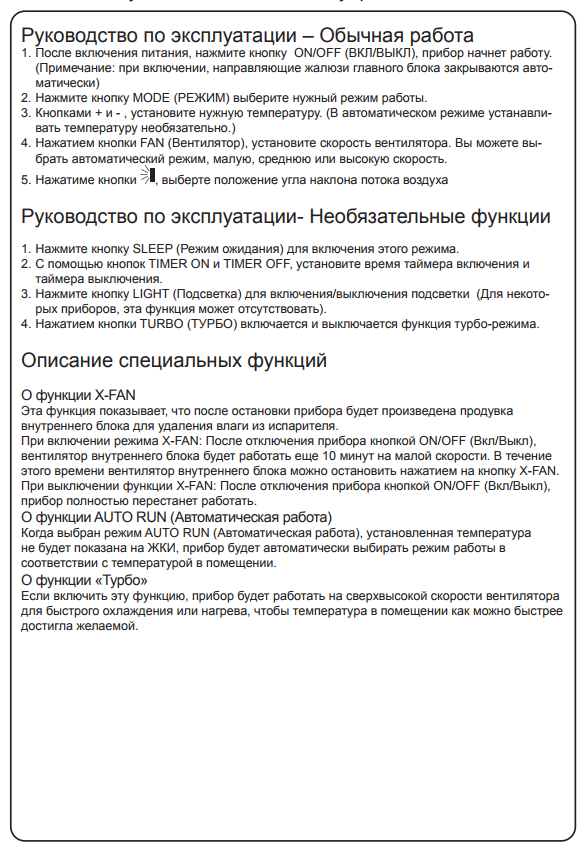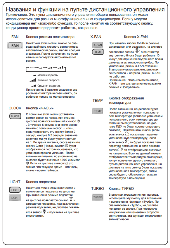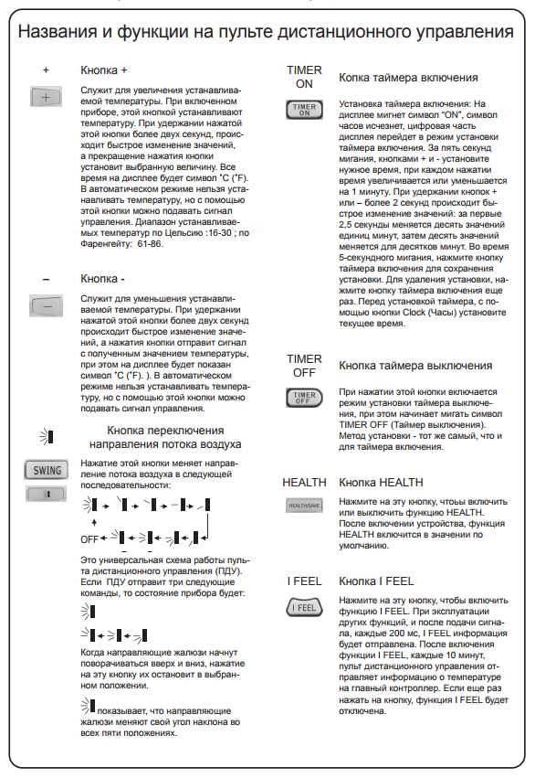 Le manuel des climatiseurs contient une description détaillée d'un modèle spécifique, ses capacités techniques, des recommandations d'installation, ainsi qu'un bref aperçu des dysfonctionnements possibles. Les modèles sont en grande partie du même type, par conséquent, une approche unifiée de la gestion est appliquée. Les télécommandes de différents modèles peuvent présenter des différences insignifiantes. Les télécommandes des séries classique et onduleur sont quelque peu différentes en apparence (voir photo), mais elles sont similaires dans l'ensemble des commandes.