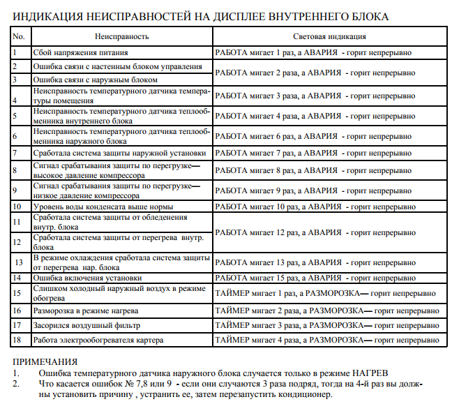 Il est recommandé de réparer le climatiseur dans des centres de service spécialisés. L'indication d'erreur n'indique pas toujours la présence d'un dysfonctionnement. Il existe des cas de pannes, notamment lors de surtensions. Pour une indication fiable, déconnectez l'appareil du réseau pendant un moment, puis rallumez-le.