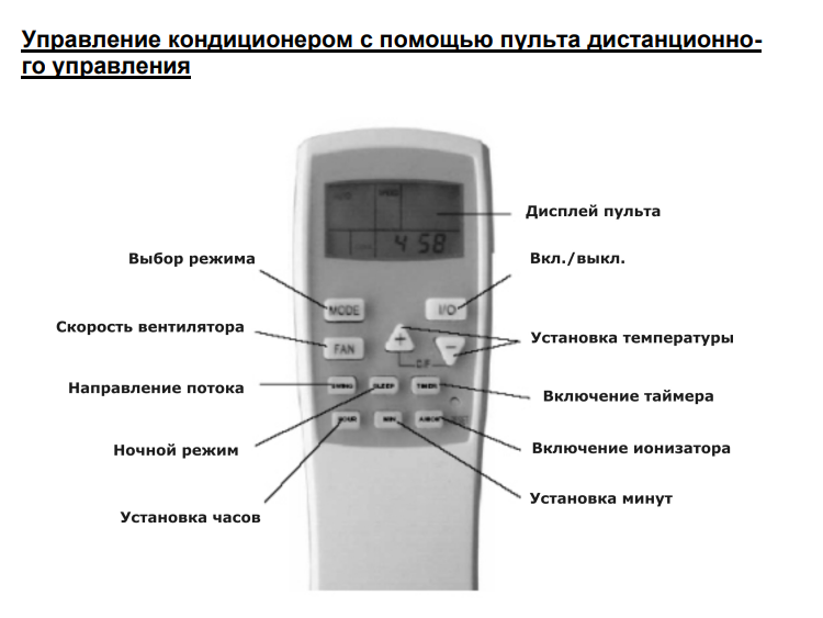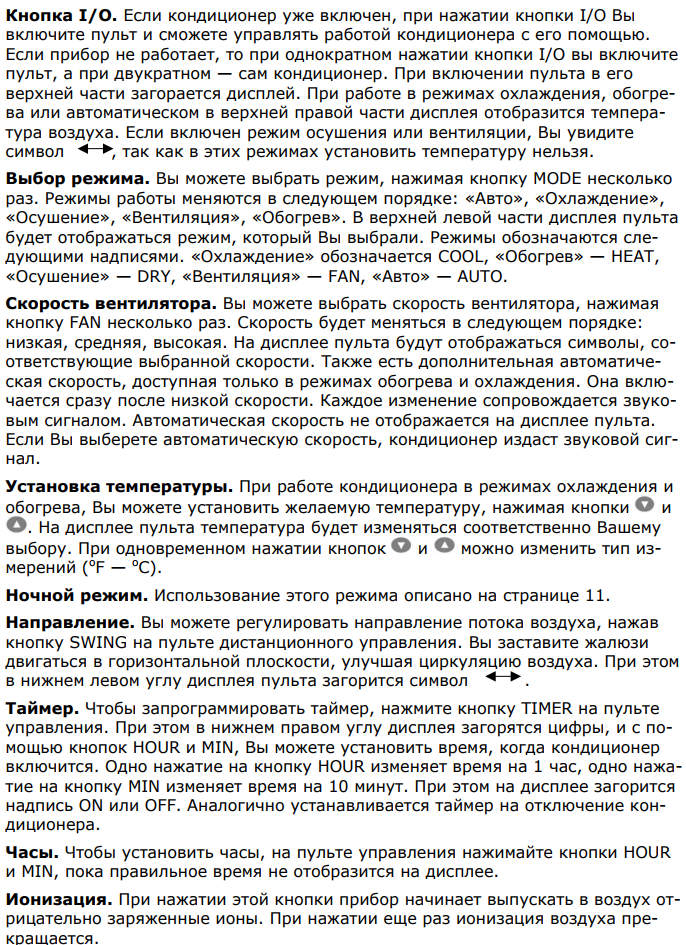 De plus, le manuel d'utilisation comprend toutes les recommandations pour la mise en place et le réglage du mode de fonctionnement. Dans le tableau détaillé, l'utilisateur peut trouver une liste complète des caractéristiques techniques, la désignation de chaque élément du système split et la signification des boutons de la télécommande du climatiseur.