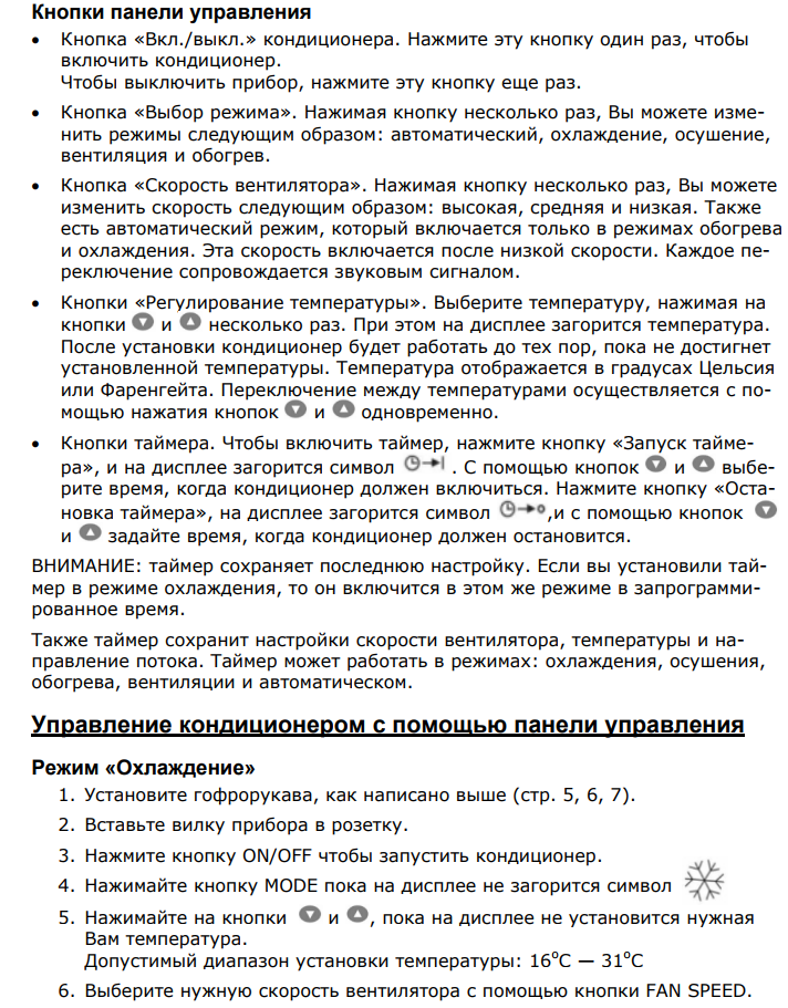Les options de réglage vous aident à choisir les modes les plus adaptés à votre sujet. Ces unités mobiles sont souvent utilisées dans les bureaux, les services et les locaux industriels. La facilité d'utilisation garantit la présence de modes « veille », « turbo ». Parmi les "inconvénients", les acheteurs ont noté le coincement des roues dans la partie inférieure du boîtier lors du déplacement et l'apparition d'un léger craquement de la grille rotative, qui se produit lors d'une utilisation prolongée du climatiseur.