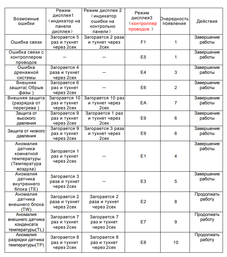 - Codes d'erreur du climatiseur Akvilon