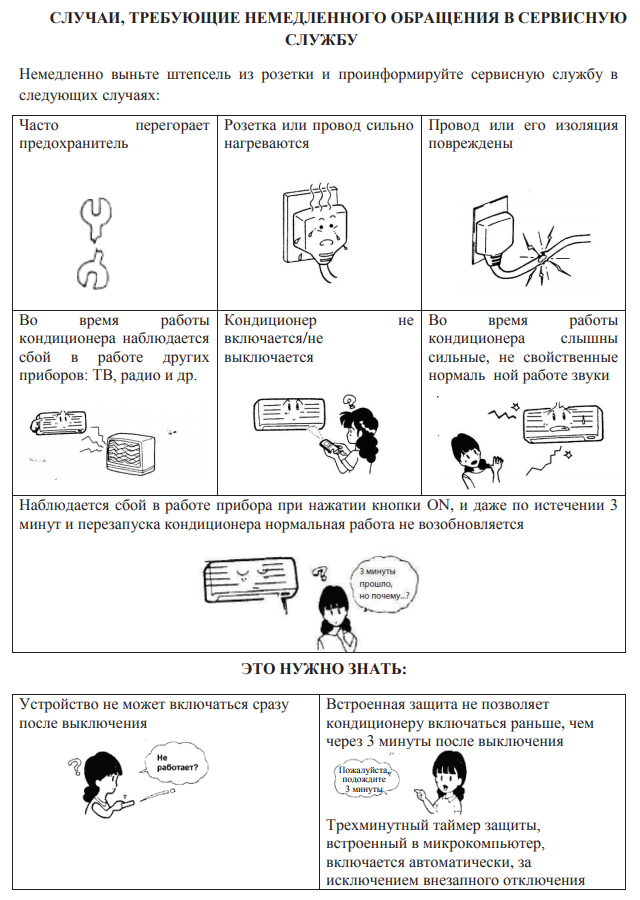 Vous devez également vous familiariser avec les caractéristiques du service de garantie, découvrir les situations dans lesquelles vous pouvez réparer vous-même le climatiseur.Souvent, de telles tentatives pour rectifier la situation annuleront la garantie.