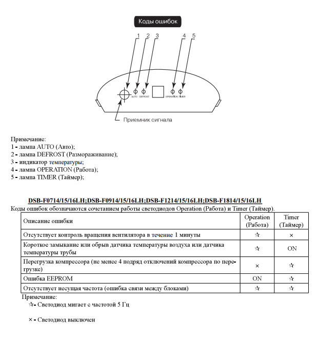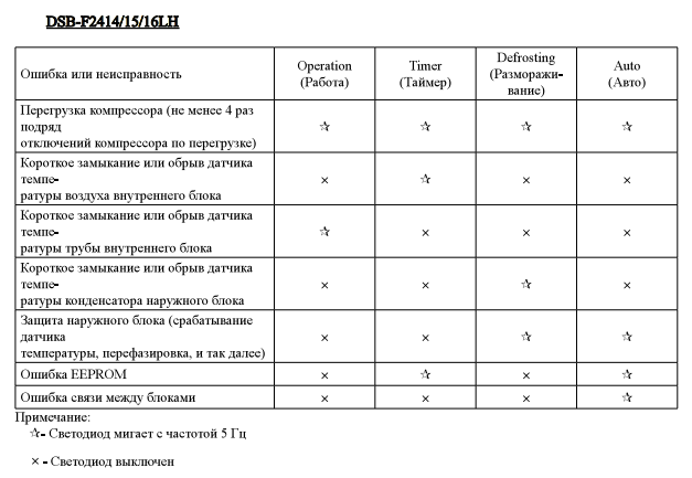 Les instructions pour la plupart des modèles ne fournissent pas de description des codes d'erreur du climatiseur que l'appareil signale en cas de dysfonctionnement. Si l'appareil dispose d'un système d'autodiagnostic, le code s'allumera sur l'écran d'indication.