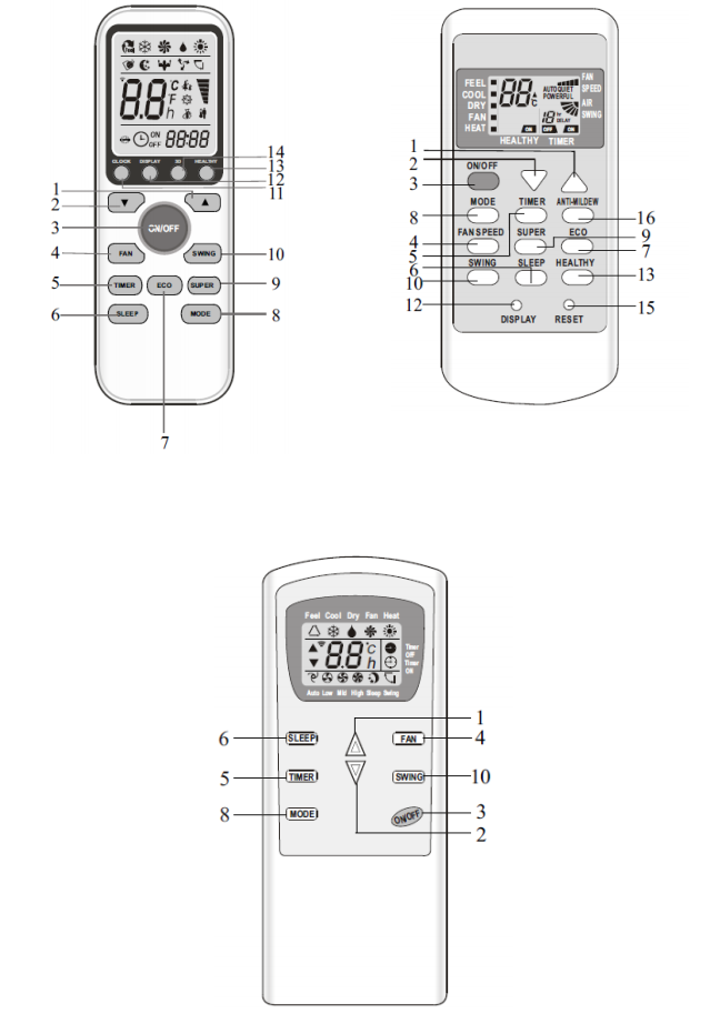 Tout le contrôle de l'équipement est effectué à partir de la télécommande, vous devez faire attention à cela. Dans certains modèles, il n'y a pas de contrôle manuel, dans d'autres, il sera impossible de régler les modes de température, etc.