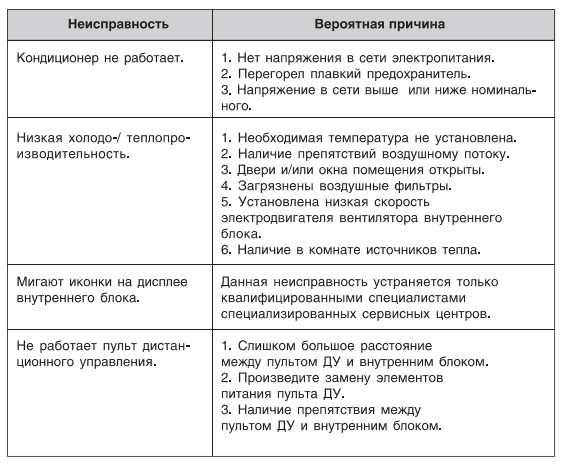 Si une situation anormale se produit, le code d'erreur apparaîtra sur l'écran de l'unité intérieure. Ceci est rendu possible grâce à la fonction moderne d'autodiagnostic du compresseur. Un tel dysfonctionnement peut être déchiffré à l'aide de tables spéciales et une conclusion peut être tirée sur la nécessité d'une réparation. Si cela est nécessaire, il est recommandé de contacter un spécialiste qui sera en mesure de reconnaître plus précisément le code de panne.