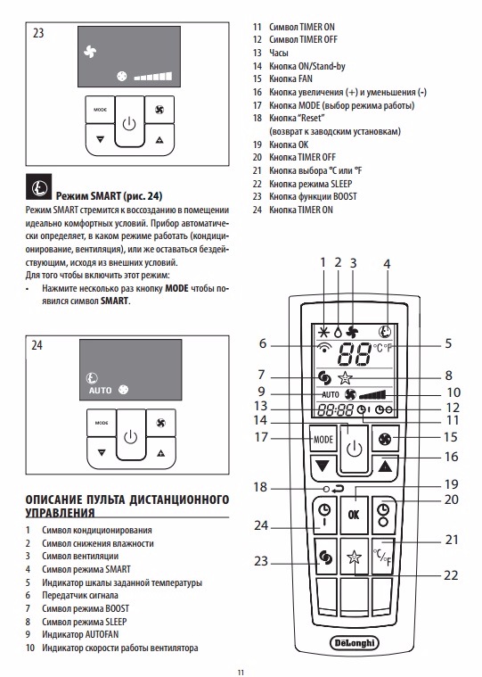 Afin d'éviter des erreurs de fonctionnement, l'appareil doit être correctement préparé pour le fonctionnement. L'instruction pour les climatiseurs Delonghi contient des recommandations de base :