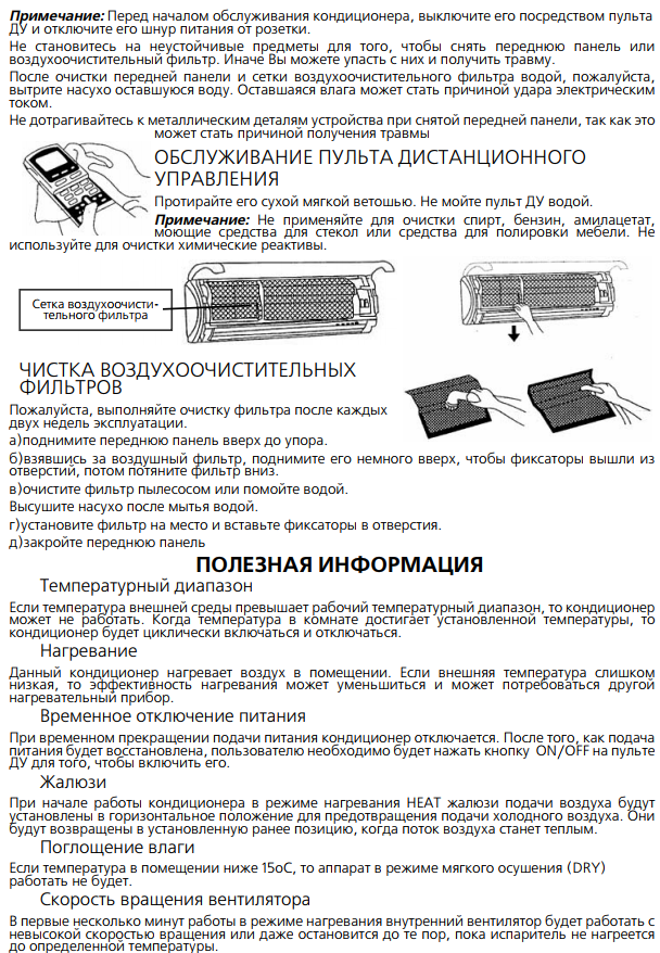 - règles de lavage de l'unité intérieure ;