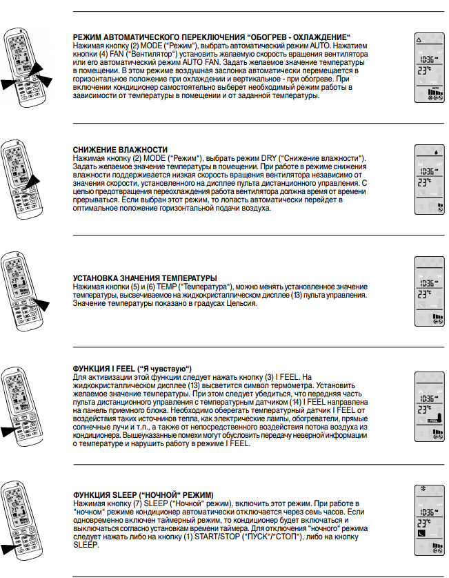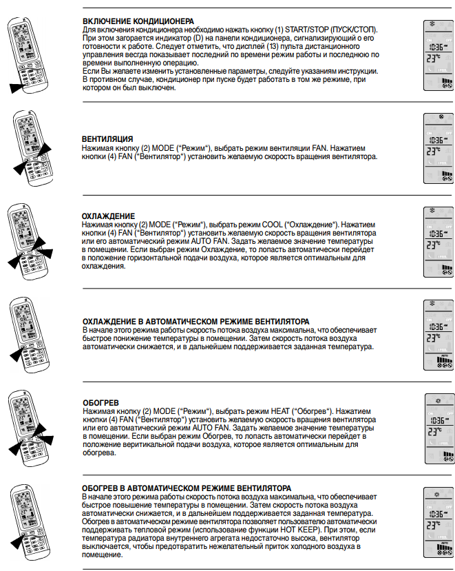 Les instructions pour les climatiseurs sont uniques dans chaque cas, par conséquent, la structure ci-dessus est strictement générale, mais commune à tous les modèles.