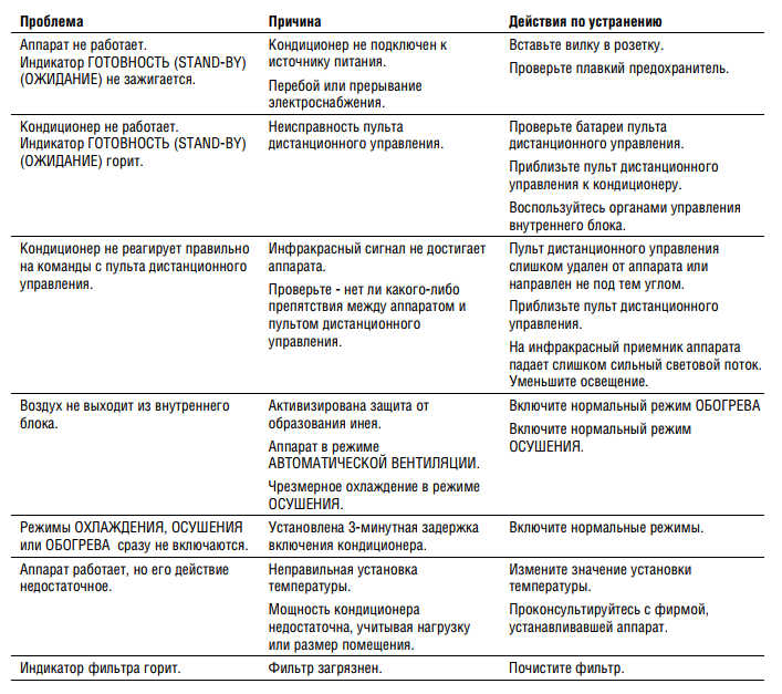 Habituellement, en cas de dysfonctionnement, le climatiseur est obligé de réagir et de passer en mode d'indication "dysfonctionnement". Ce n'est pas toujours le cas, et l'appareil peut continuer à fonctionner, mais "de manière incorrecte" (par exemple, il n'y a pas d'alimentation en air chaud). Dans tous les cas, il est recommandé de consulter un spécialiste.
