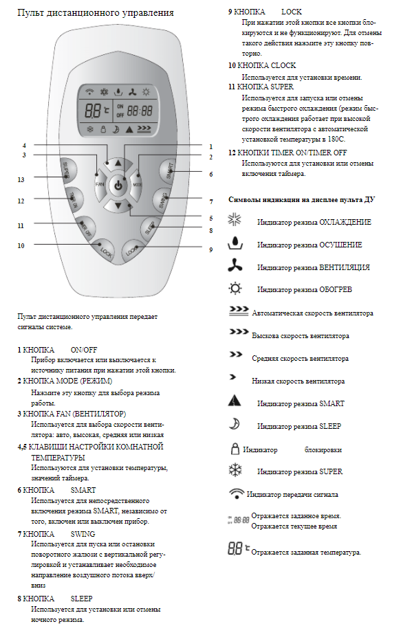 Si vous avez perdu le mode d'emploi du climatiseur, ne désespérez pas - le contrôle du système est compréhensible à un niveau intuitif et vous pouvez vous familiariser avec les fonctionnalités de fonctionnement de l'appareil sur Internet.